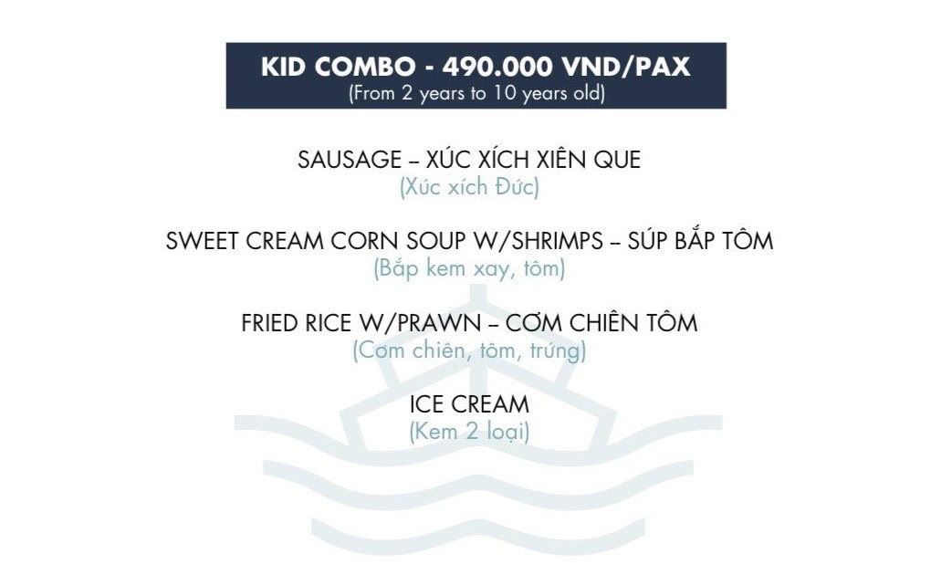 | VÉ & THỰC ĐƠN TRẺ EM | 490.000 đ/khách | Xem menu | |