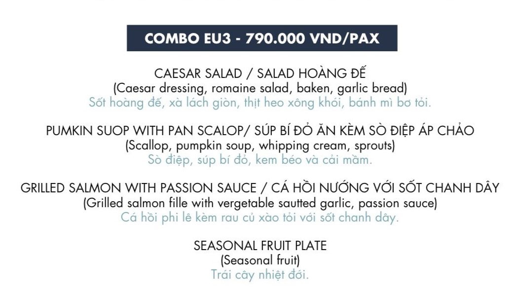 | VÉ & THỰC ĐƠN ÂU EU3 | 790.000 đ/khách | Xem menu | |
