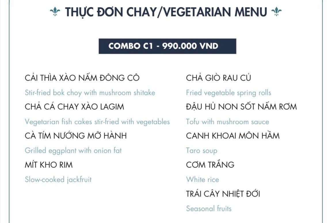 | VÉ & THỰC ĐƠN CHAY C1 | 990.000 đ/khách | Từ 4 khách | Xem menu |