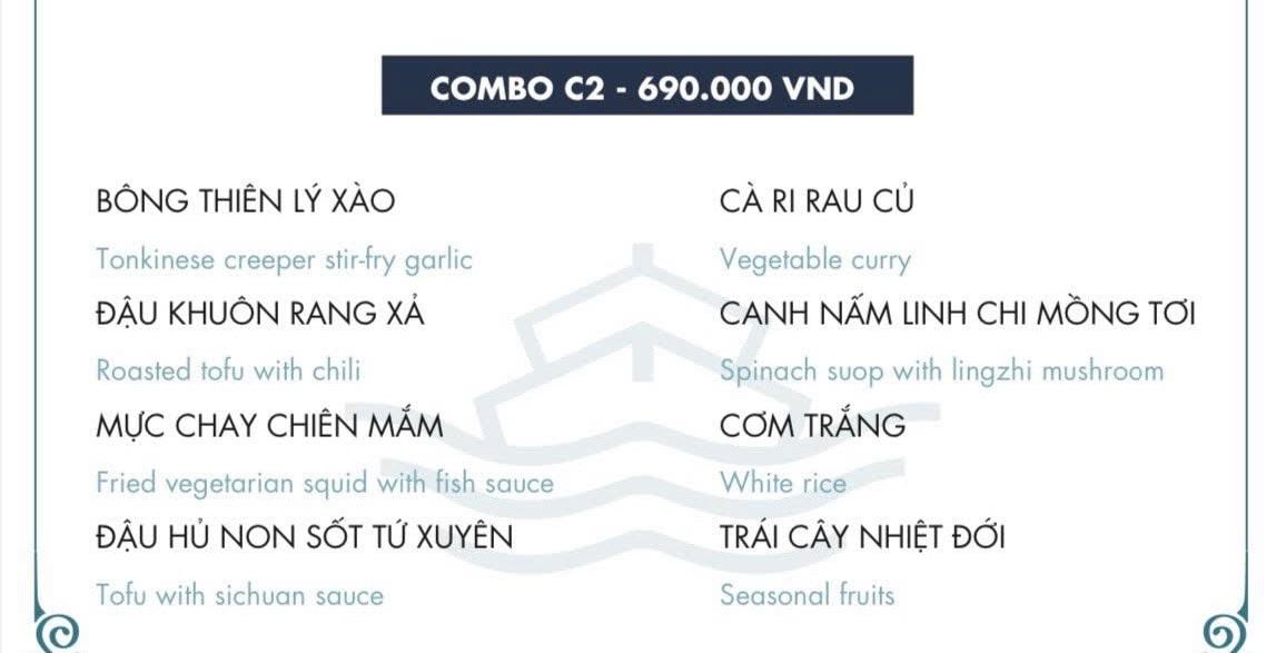 | VÉ & THỰC ĐƠN CHAY C2 | 690.000 đ/khách | Từ 4 khách | Xem menu |